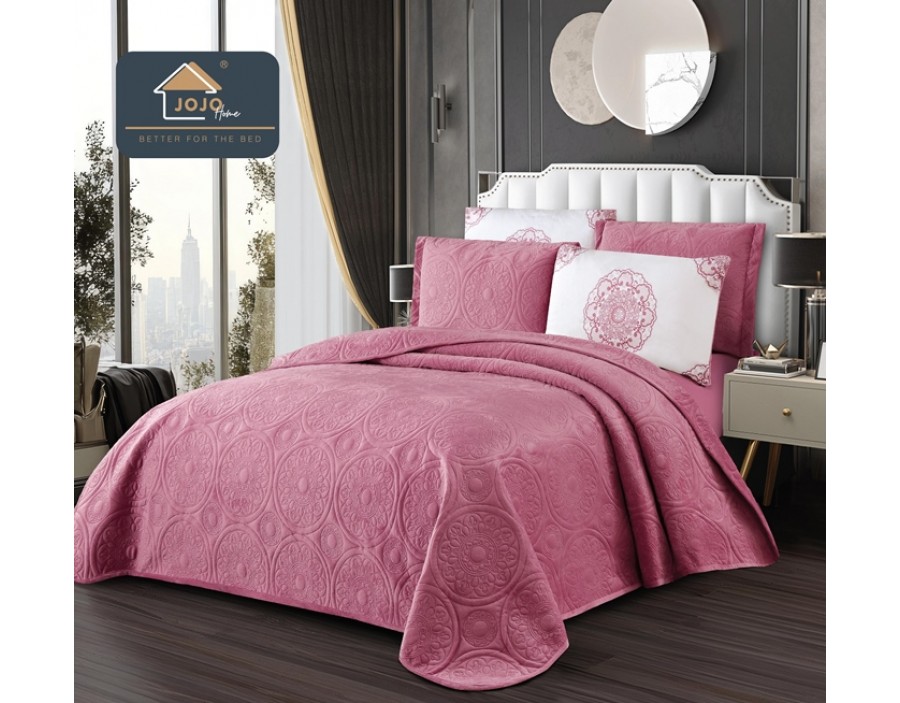 Transformă dormitorul într-un spațiu elegant și primitor cu această cuvertură din catifea jojo, set complet 5 piese, ideală pentru un decor modern și rafinat. Realizată din materiale de calitate superioară, cu textură moale și plăcută la atingere, cuvertura oferă atât un aspect luxos, cât și un confort excelent pe tot parcursul anului.