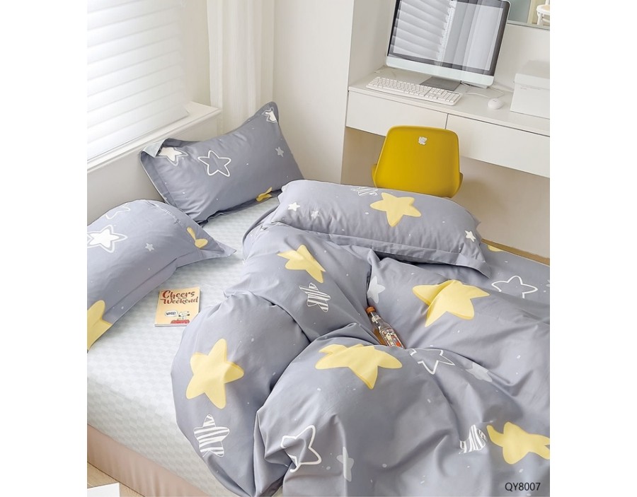 100% bumbac, calitate extra, material gros, dens și durabil, textură moale și plăcută la atingere, Imprimeu complet, culori rezistente, ideală pentru pat dublu, fixare perfectă datorită cearceafului cu elastic