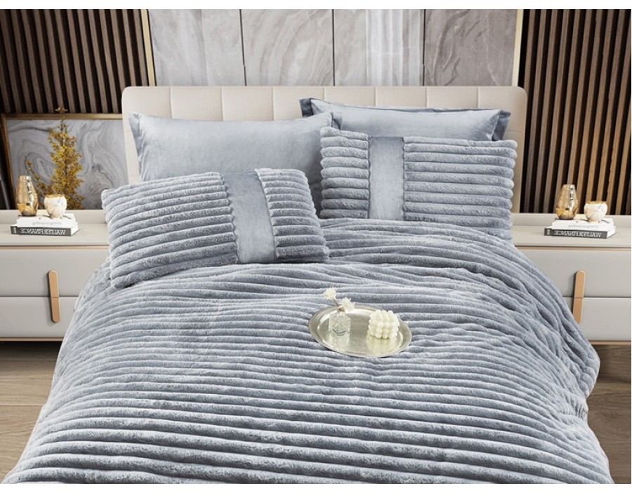 Designul modern, culorile elegante și textura premium transformă dormitorul într-un spațiu cozy, cald și sofisticat. Este alegerea ideală pentru serile friguroase de iarnă!